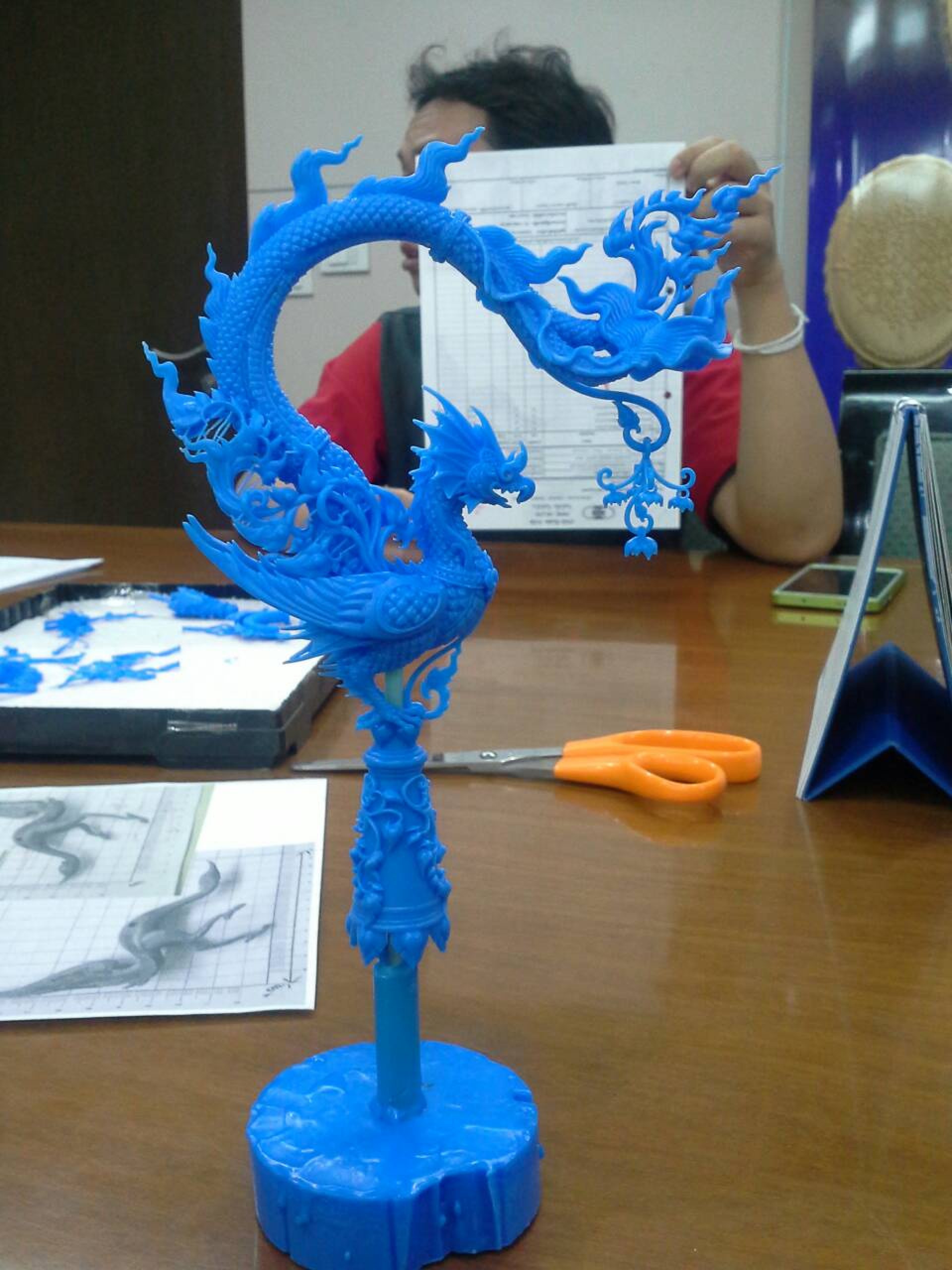 การสร้างต้นแบบ 3 มิติ: นำแบบร่างมาขึ้นรูปเป็นต้นแบบ 3 มิติ โดยอาจใช้การปั้นด้วยมือหรือใช้เทคโนโลยีการพิมพ์ 3 มิติ เพื่อให้ได้รายละเอียดที่ซับซ้อนและสมบูรณ์แบบ
