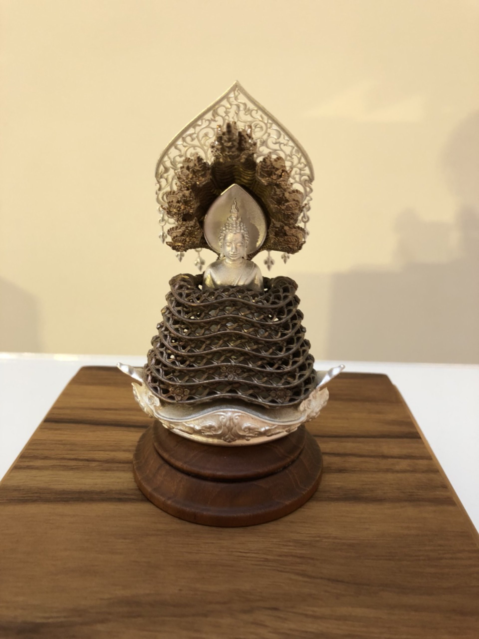 นำเสนอพุทธประติมาที่แตกต่างจากงานทั่วไป โดยหนึ่งในผลงานชิ้นเอกคือ "พระพุทธมุจจลินท์ (นาคปรก)" ที่ผสานความงามทางสุนทรียศาสตร์เข้ากับความเชื่อและเรื่องราวทางพุทธศาสนาได้อย่างลงตัว
