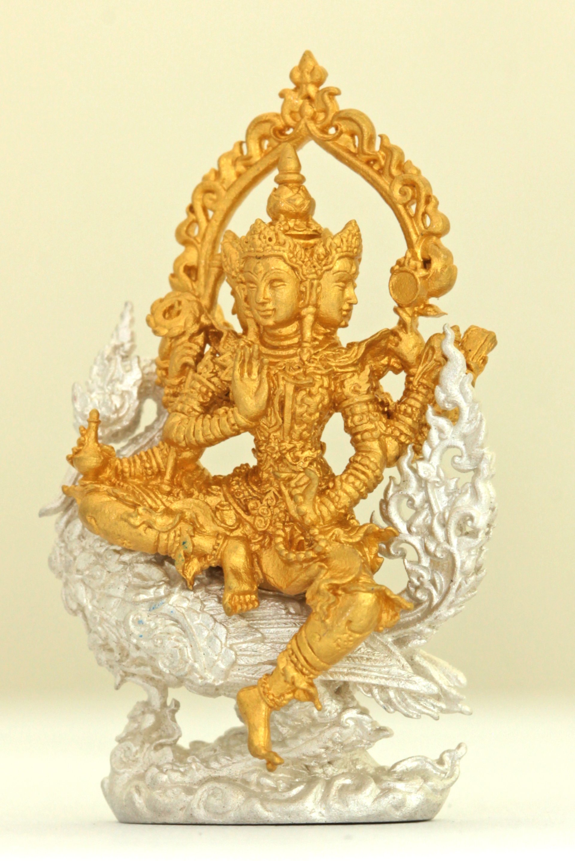 เป็นงานประติมากรรมขนาดเล็กที่โดดเด่นและมีเอกลักษณ์ พระสิทธะพรหมในรูปเป็นองค์เทพที่มี 3 เศียรและ 8 กร แต่ละเศียรหันไปคนละทิศทาง แสดงถึงการรับรู้และการปกป้องคุ้มครองที่ครอบคลุมทุกด้าน มือแต่ละข้างของพระองค์ถือสิ่งของต่าง ๆ ซึ่งเป็นสัญลักษณ์ของพลังและคุณสมบัติตามความเชื่อ เช่น ดอกบัว (ความบริสุทธิ์), คฑา (อำนาจ) และสังข์ (ความอุดมสมบูรณ์)