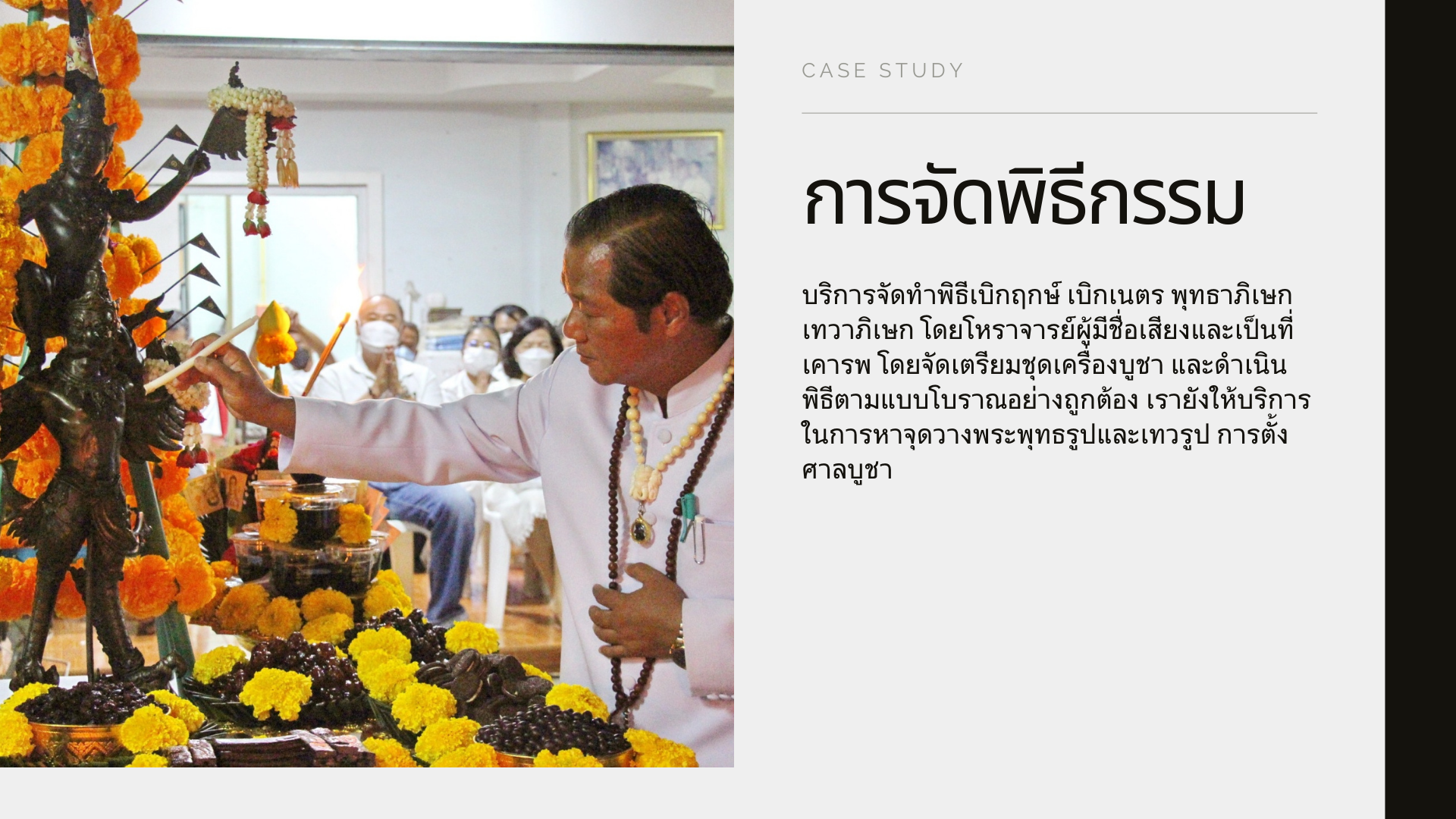 Jinttakan Crafted & Studio ไม่ได้เป็นเพียงผู้นำด้านการออกแบบและหล่อองค์พระที่ประณีตที่สุดเท่านั้น แต่เรายังพร้อมมอบบริการ รับจัดพิธีกรรมอันศักดิ์สิทธิ์ เพื่อเสริมความเป็นสิริมงคลและความสมบูรณ์แก่ผลงานของคุณ